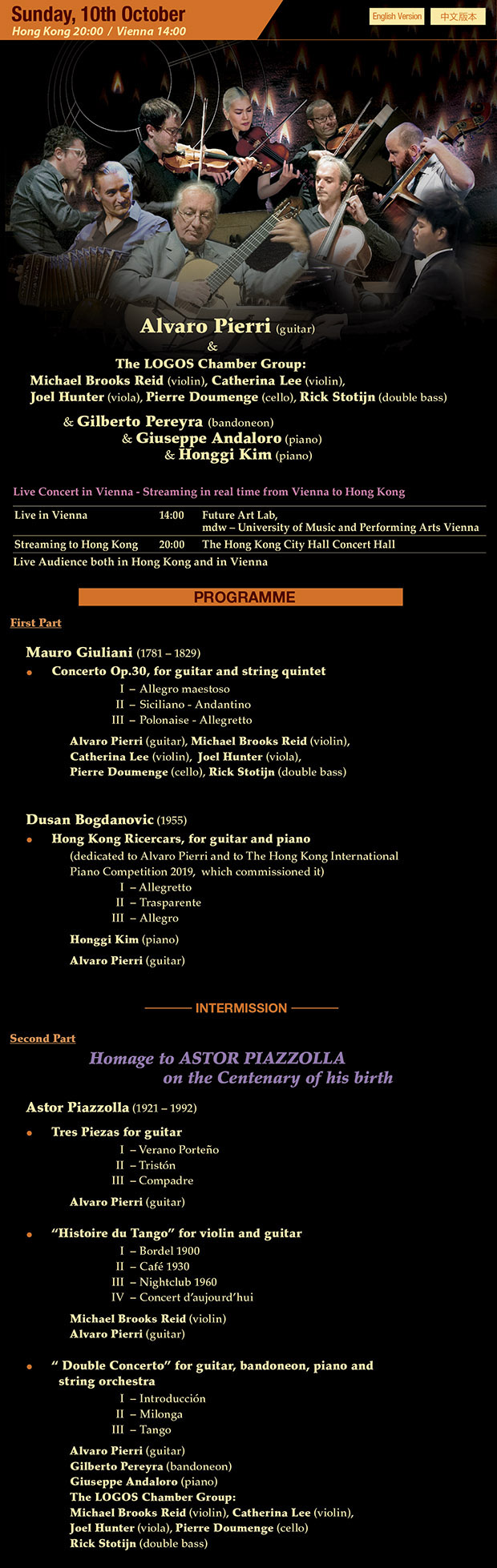 The University of Music and Performing Arts – Vienna streamed live either Vienna or Hong Kong Hong Kong City Hall Concert Hall – Hong Kong The Future Lab Concert Hall The Fanny Hensel Hall Alvaro Pierri, Honggi Kim, Giuseppe Andaloro, Ilya Rashkovskiy, Luka Okros, Jinang Lee Anastasia Kobekina, The Simply Quartet Colleen Lee, Rachel Cheung, Ling Wang, Maestro YVES ABEL, Emanuil Ivanov THE HONG KONG PHILHARMONIC ORCHESTRA CAMILLE SAINT- SAËNS Streaming Live Music